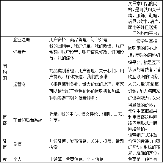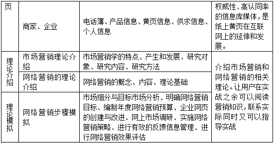5、通過(guo)(guo)學(xue)生(sheng)的(de)分(fen)組,開展各(ge)(ge)式各(ge)(ge)樣的(de)網(wang)絡(luo)營(ying)銷活(huo)動的(de)流(liu)程,體會不同層次的(de)網(wang)絡(luo)營(ying)銷給(gei)企業帶(dai)來的(de)機(ji)遇。而普通消費者也可以(yi)通過(guo)(guo)進入網(wang)絡(luo)環境,訪問(wen)上(shang)述(shu)網(wang)站,使(shi)用(yong)個人郵件服務等(deng)感受到企業網(wang)絡(luo)營(ying)銷的(de)影響(xiang)力。學(xue)生(sheng)通過(guo)(guo)親身(shen)操(cao)作軟(ruan)件,可以(yi)體會到網(wang)絡(luo)營(ying)銷與傳(chuan)統營(ying)銷的(de)區(qu)別(bie)與聯系,了(le)解各(ge)(ge)種網(wang)絡(luo)營(ying)銷策略(lve)以(yi)及(ji)如何具體實施。